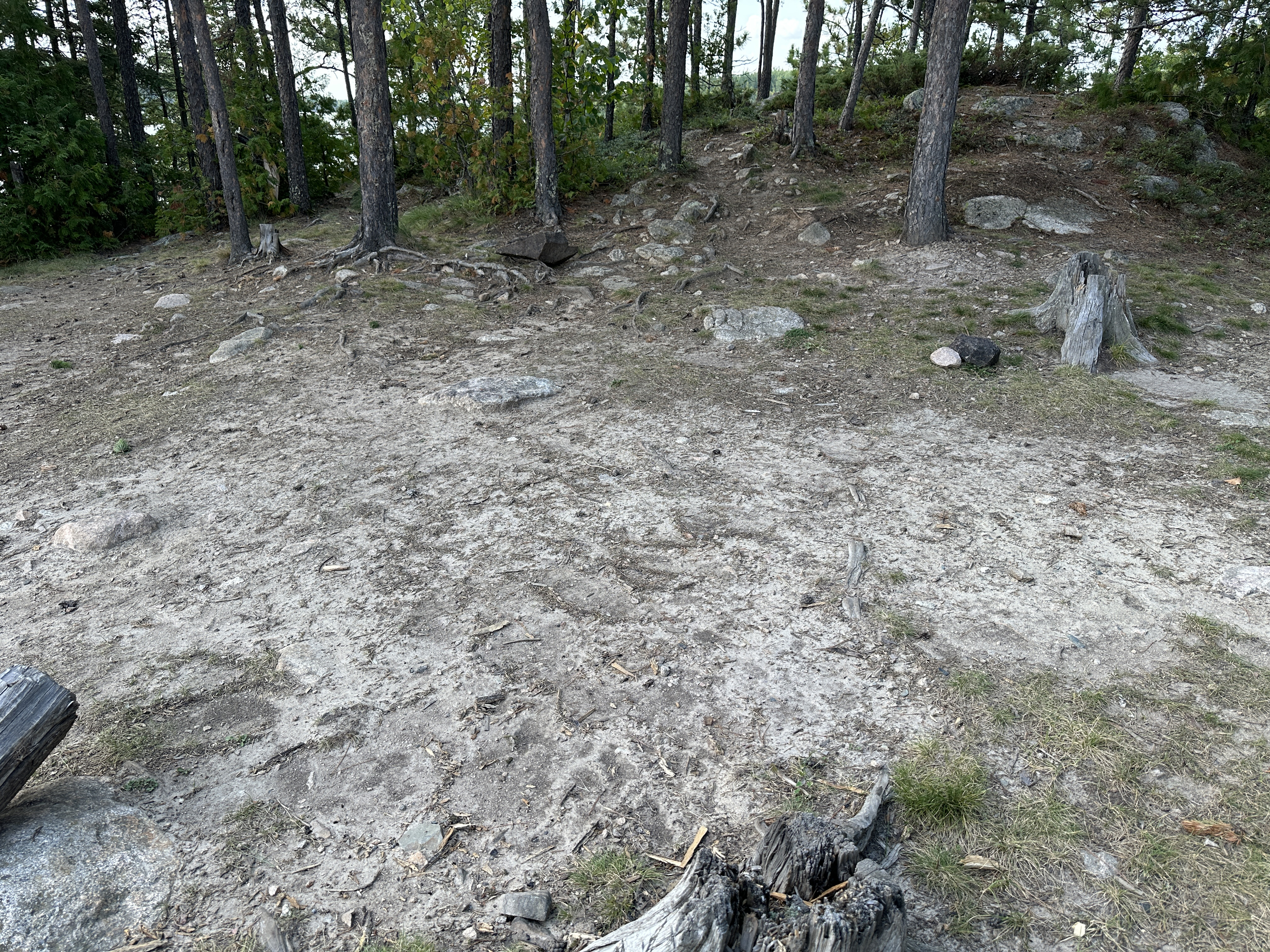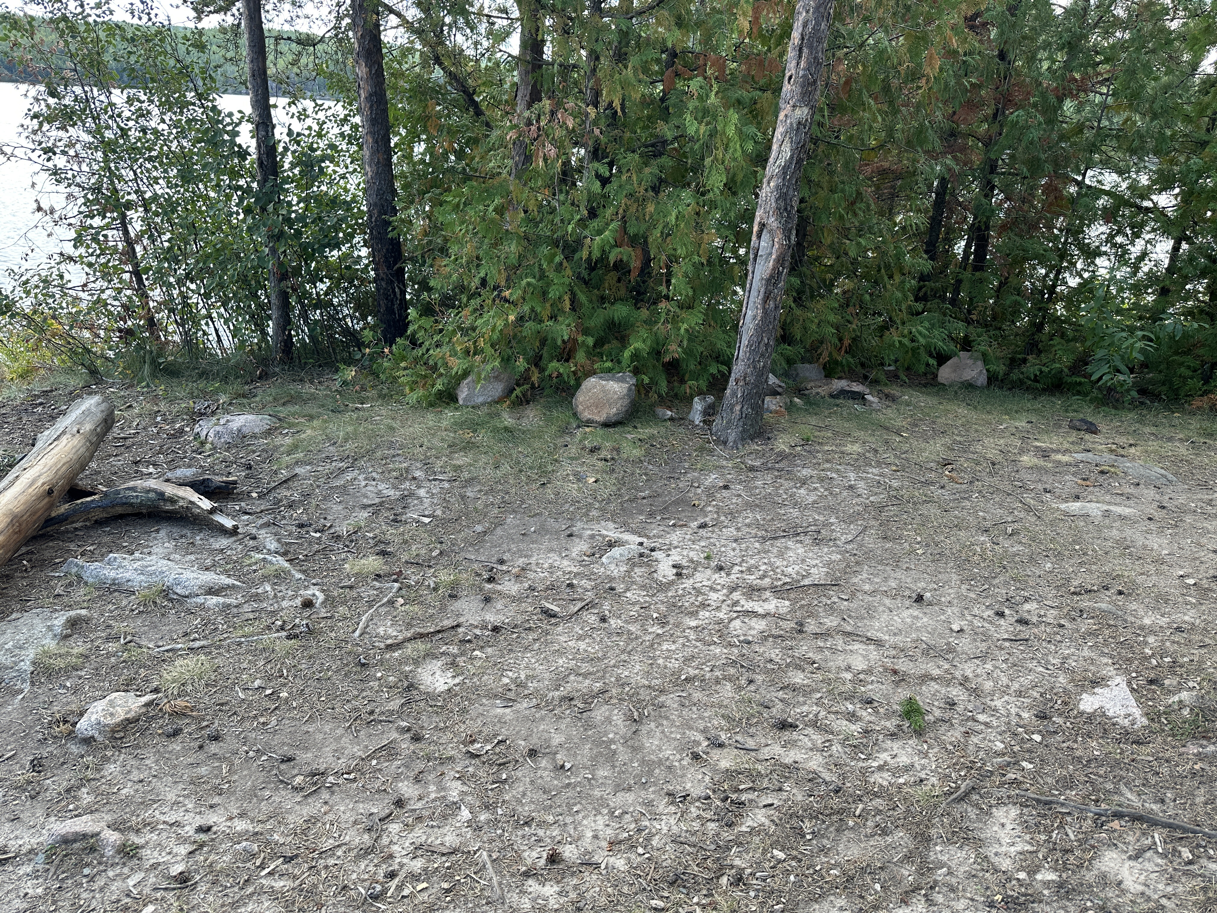 This campsite is located on the small island about 1/3rd mile north of the Sea Gull Lake to Paulson Lake portage. Canoe landing is on a tiny sand beach. There are three tent pads, but one is notably better than the other two. The two mediocre tent pads are both right next to the kitchen. The campsite is located on the south side of the island, so it is relatively private because it doesn't face the direction of the open lake. This campsite lies at the very southwestern edge of the portion of Sea Gull Lake that allows motorboat traffic.