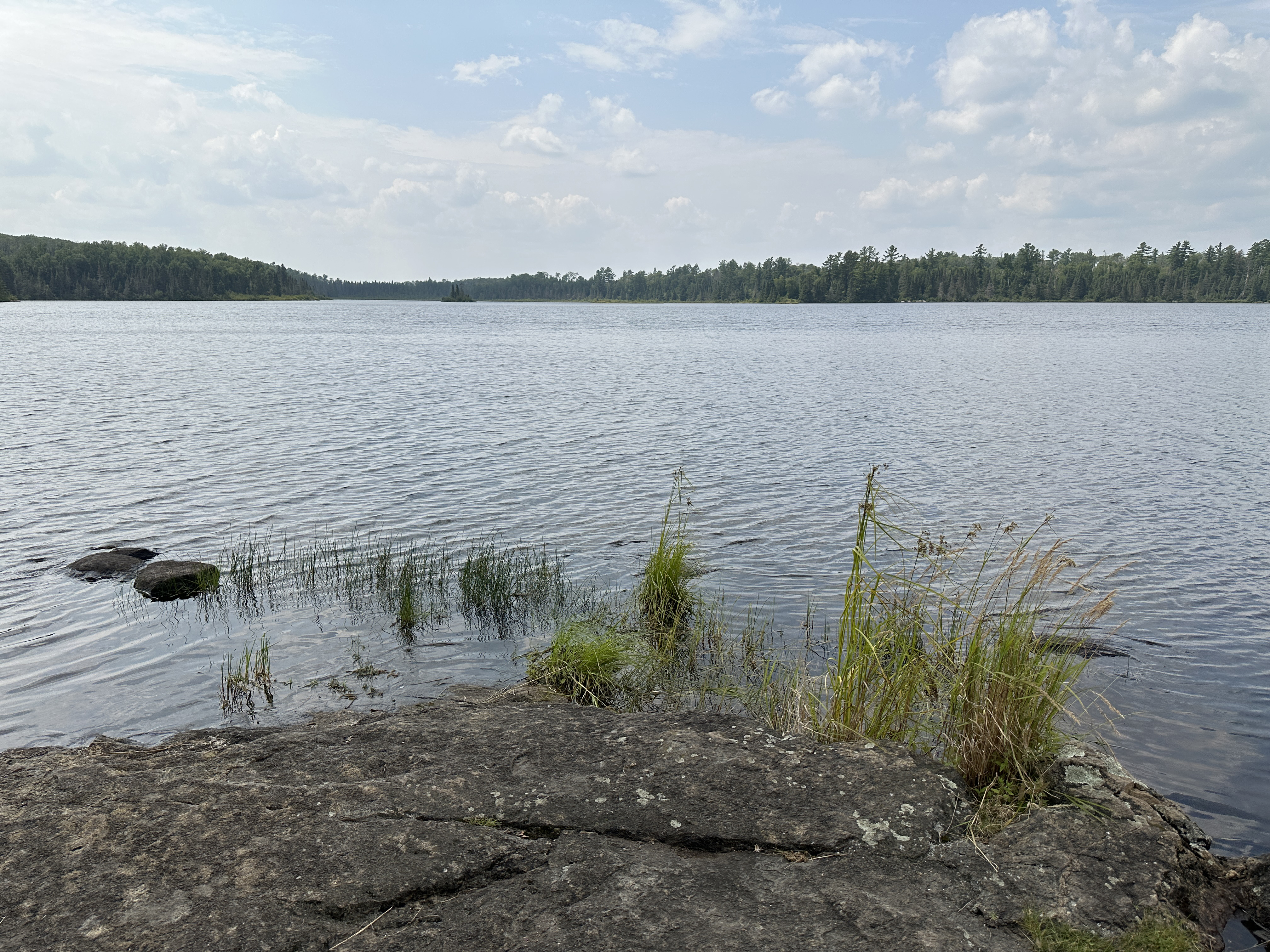 View is towards the west. For orientation, the Sawbill Lake portage landing would be to the left of center in the far distance (August 4, 2025).
