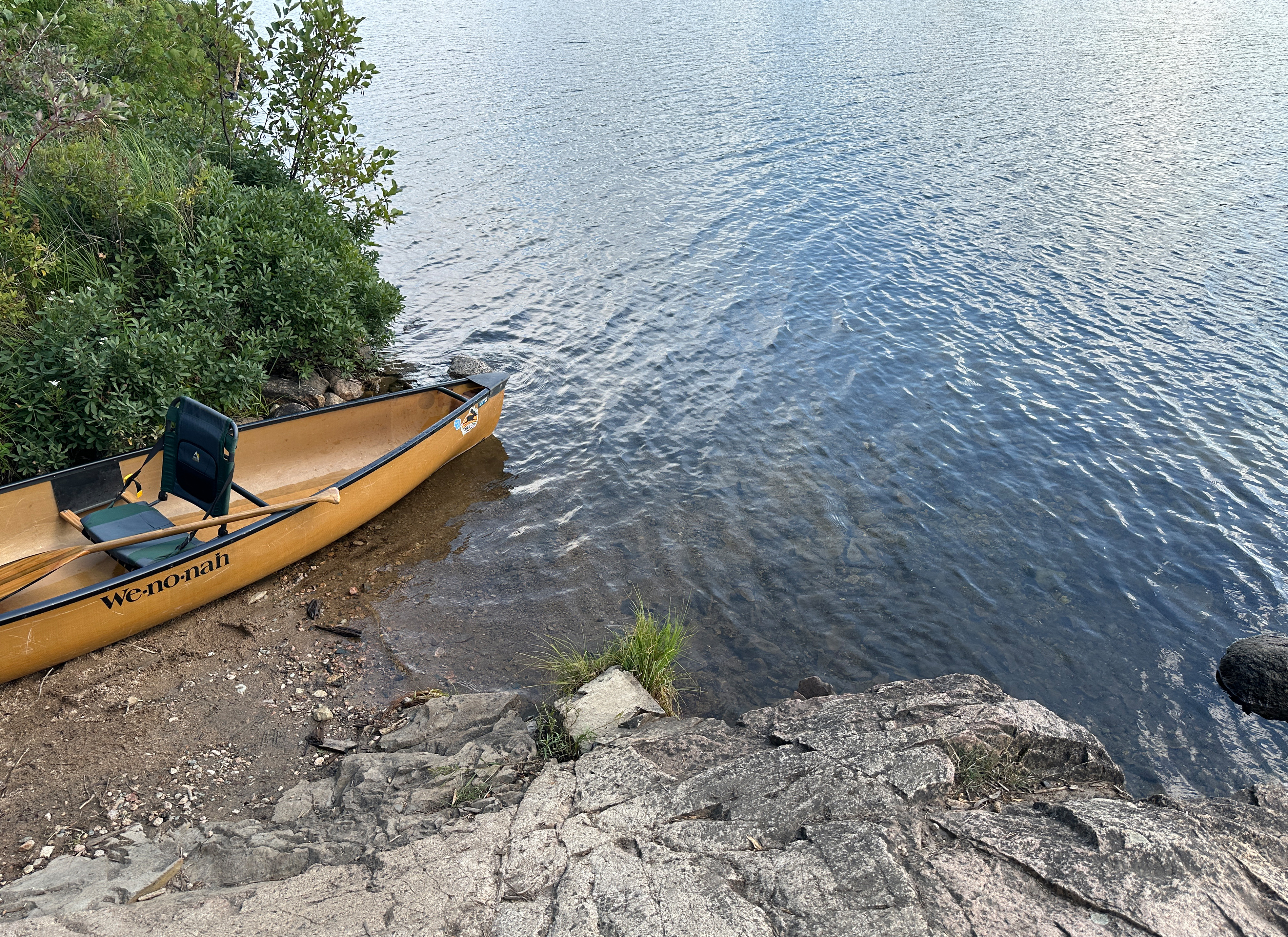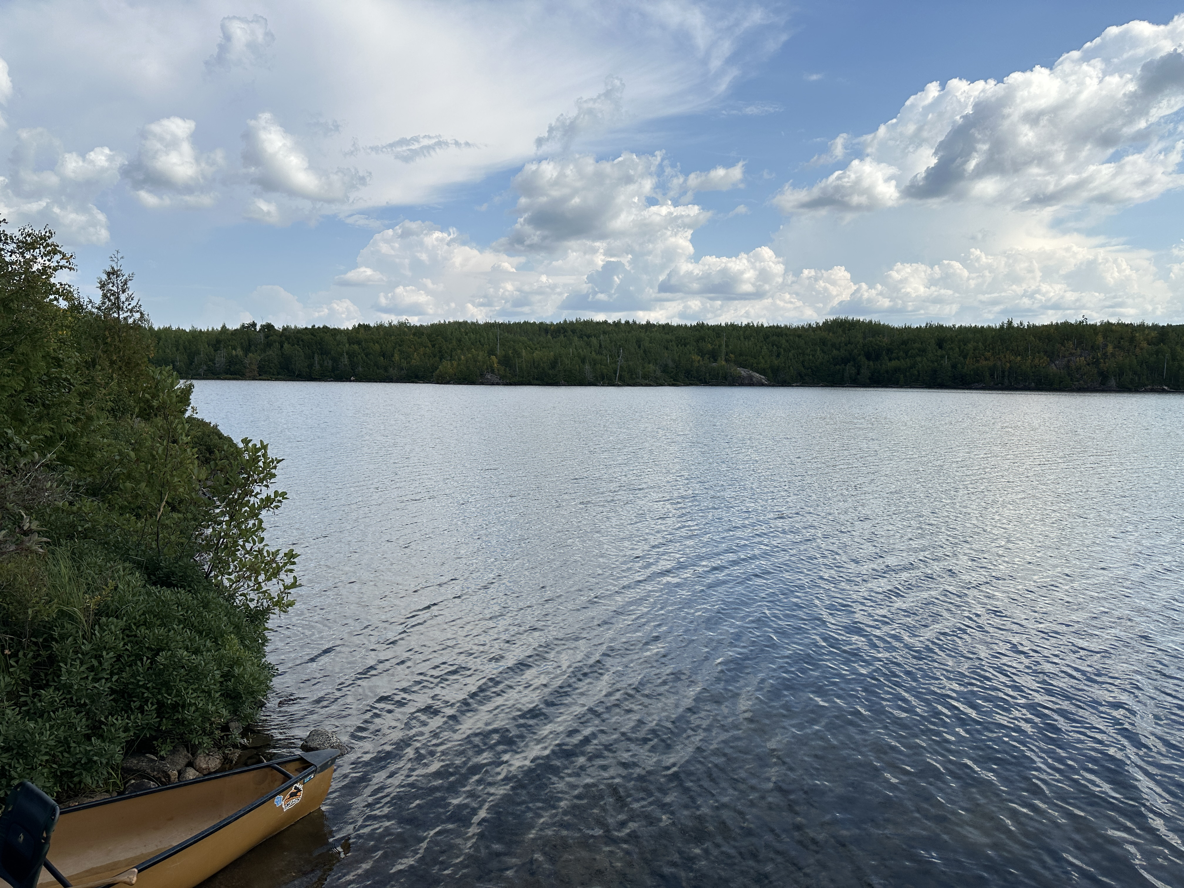 This campsite is located on the small island about 1/3rd mile north of the Sea Gull Lake to Paulson Lake portage. Canoe landing is on a tiny sand beach. There are three tent pads, but one is notably better than the other two. The two mediocre tent pads are both right next to the kitchen. The campsite is located on the south side of the island, so it is relatively private because it doesn't face the direction of the open lake. This campsite lies at the very southwestern edge of the portion of Sea Gull Lake that allows motorboat traffic.