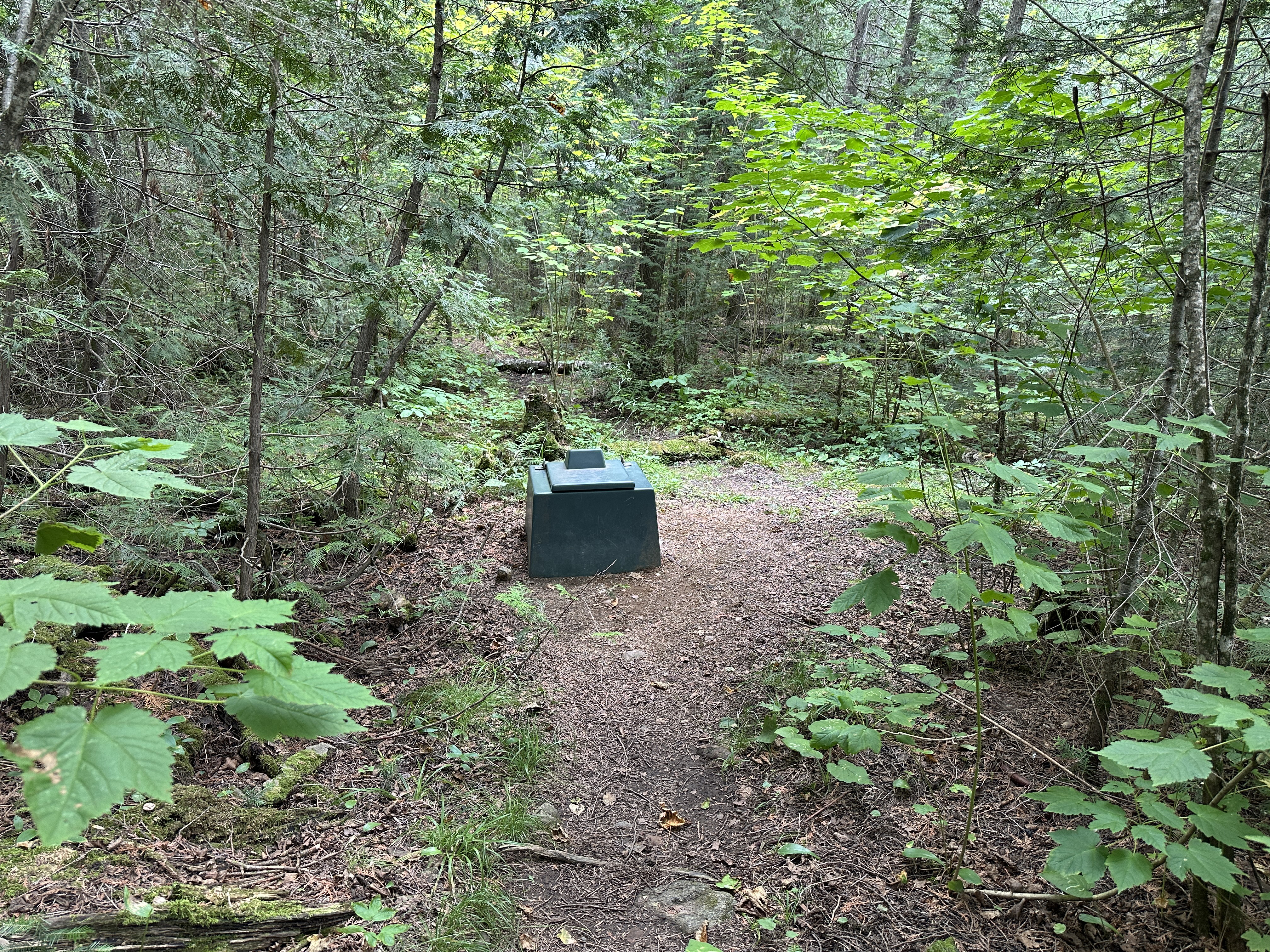 This campsite has a newer, deluxe model biffy. The latrine appears to have been moved in the last few years (compare to image below) (August 4, 2025).