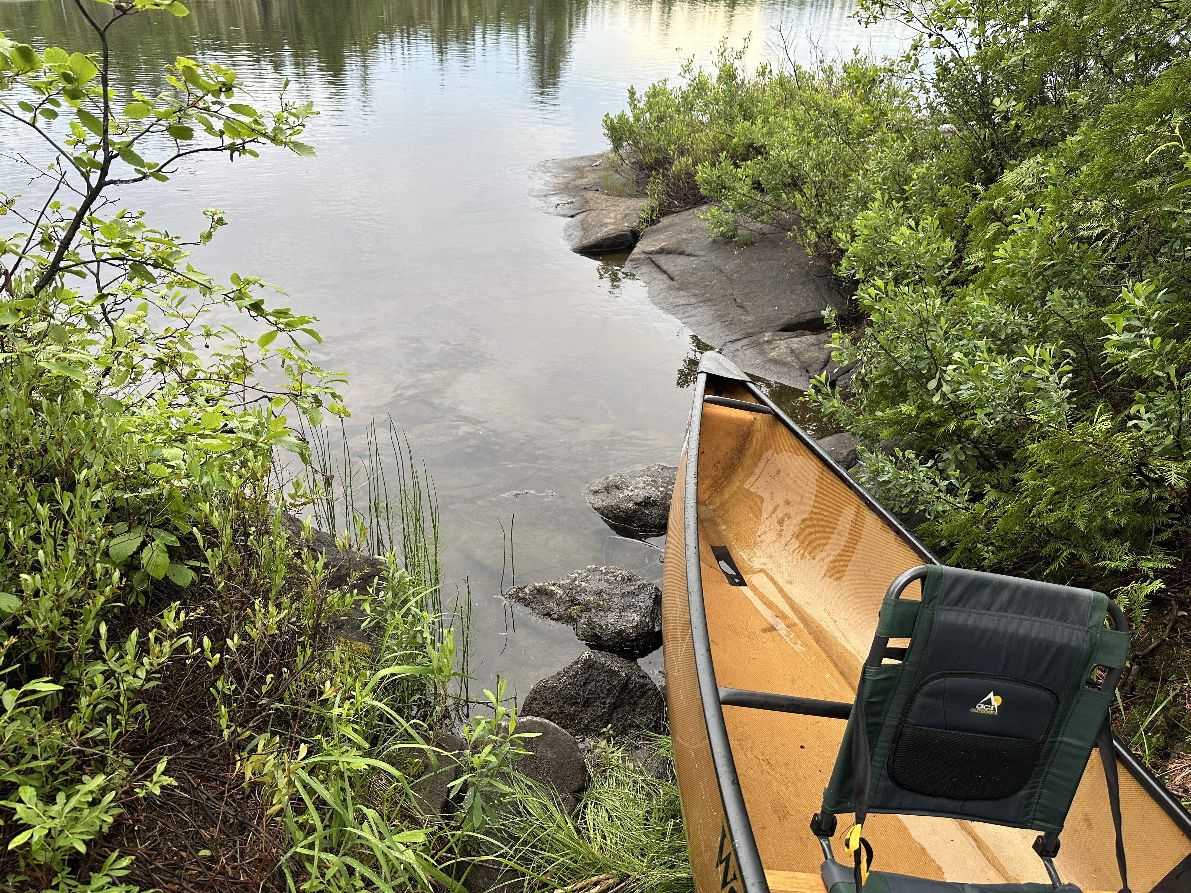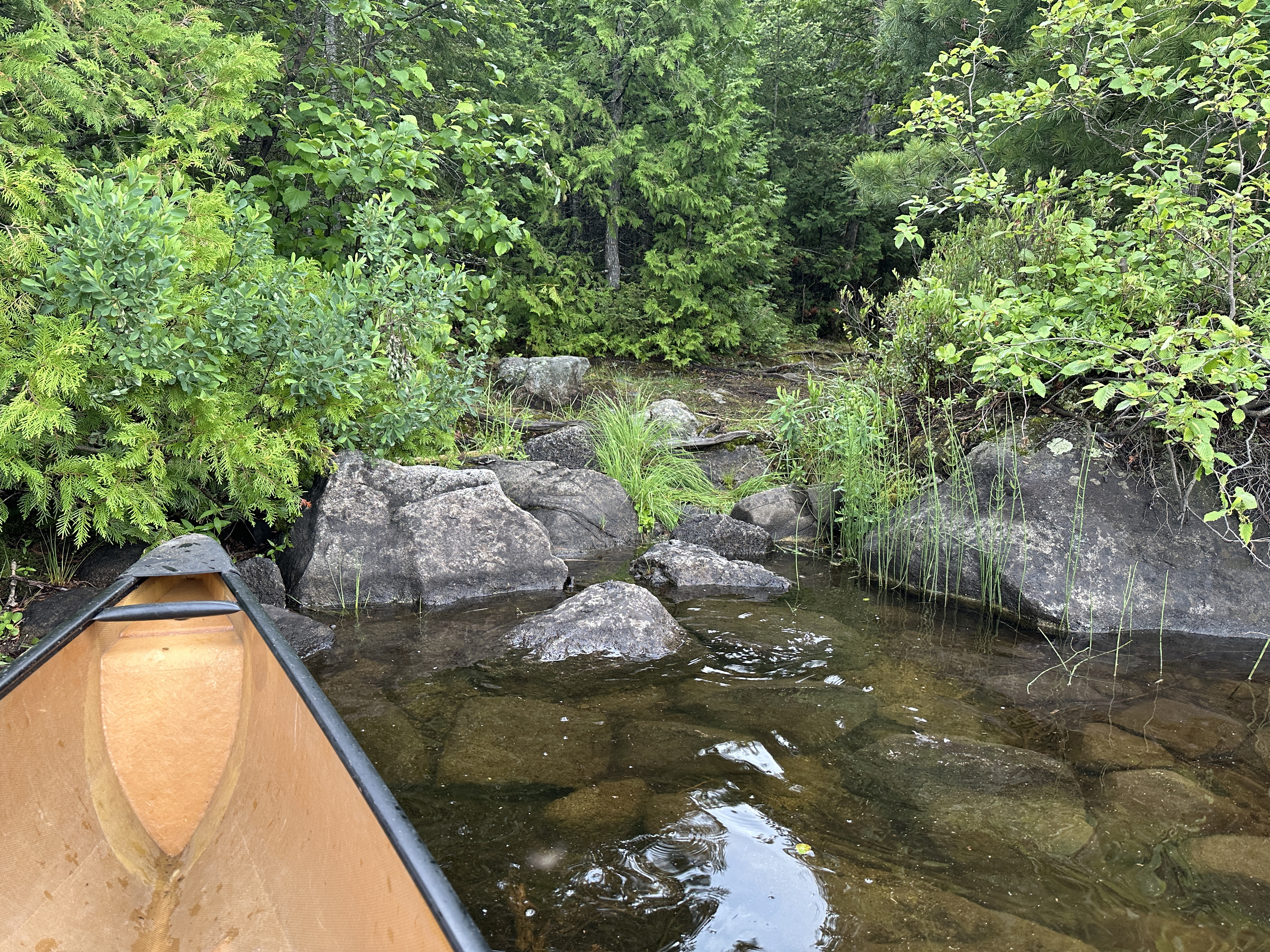 Landing at the Swamp Lake end of the portage. The typical rocks to deal with. Not too bad.