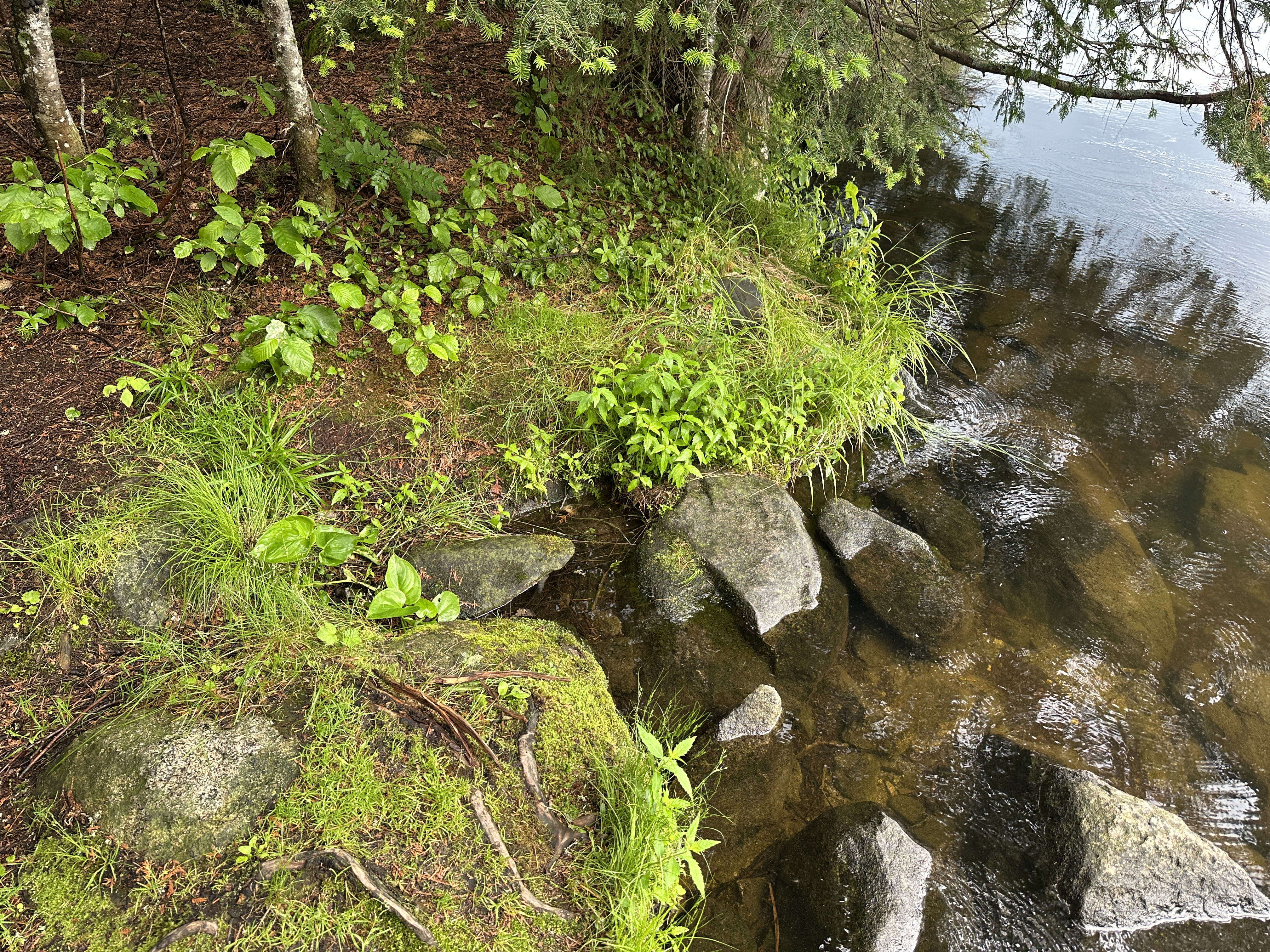 Mildly rocky landing on the Swamp Lake side of this portage. This landing is a little worse than the Caribou Lake end of the portage.